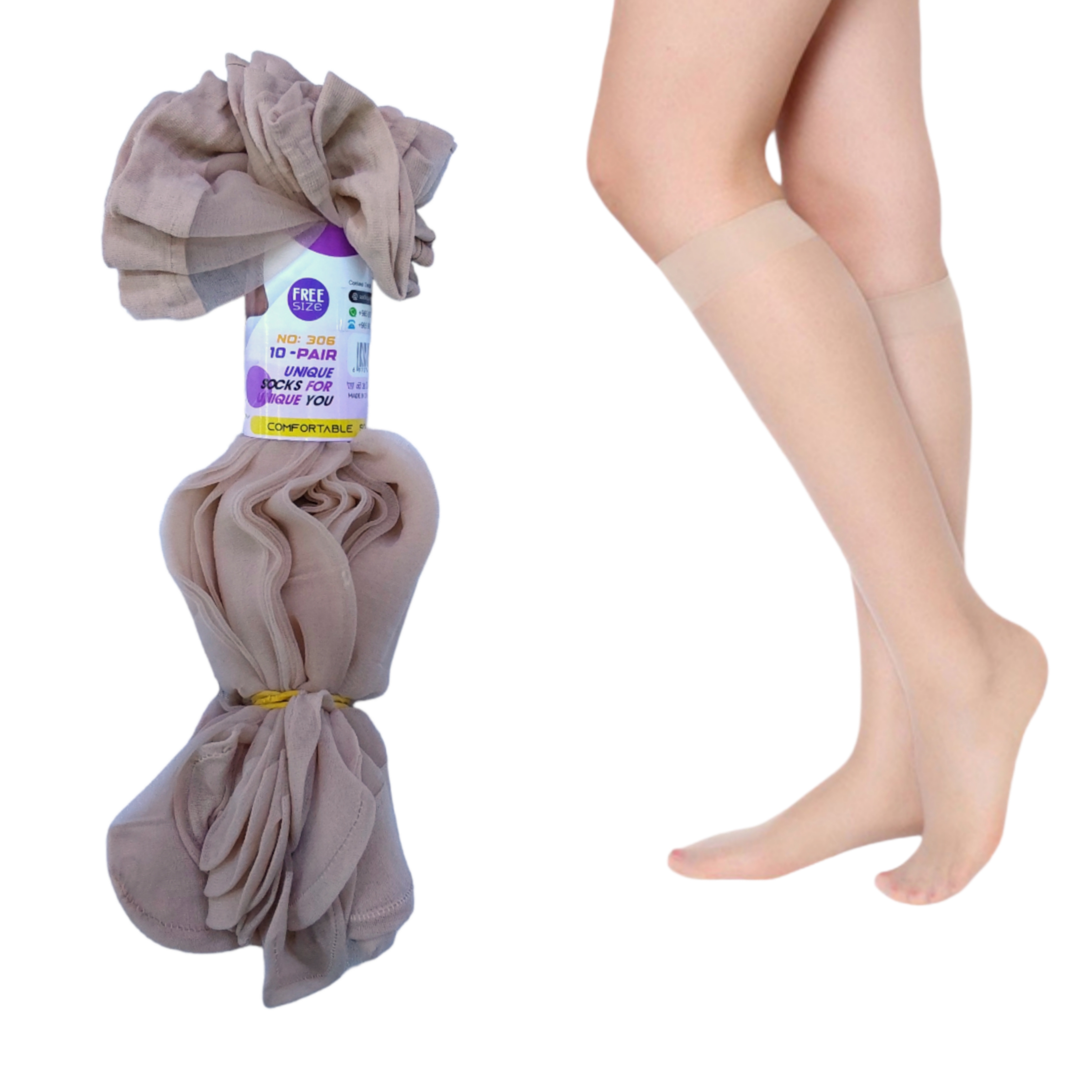 Socks Long thin (Beige)(10 pairs)